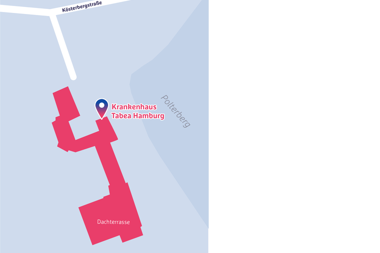 Besucher können auf dem Parkplatz vor dem Krankenhaus oder am Seitenstreifen der Kösterbergstraße parken.