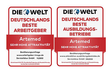 • Qualität Mit überdurchschnittlichen Umfragewerten wurde die Artemed als Top-Arbeitgeber und Top-Ausbildungsbetrieb ausgezeichnet. Top-Voraussetzungen also, um bei uns anzufangen!